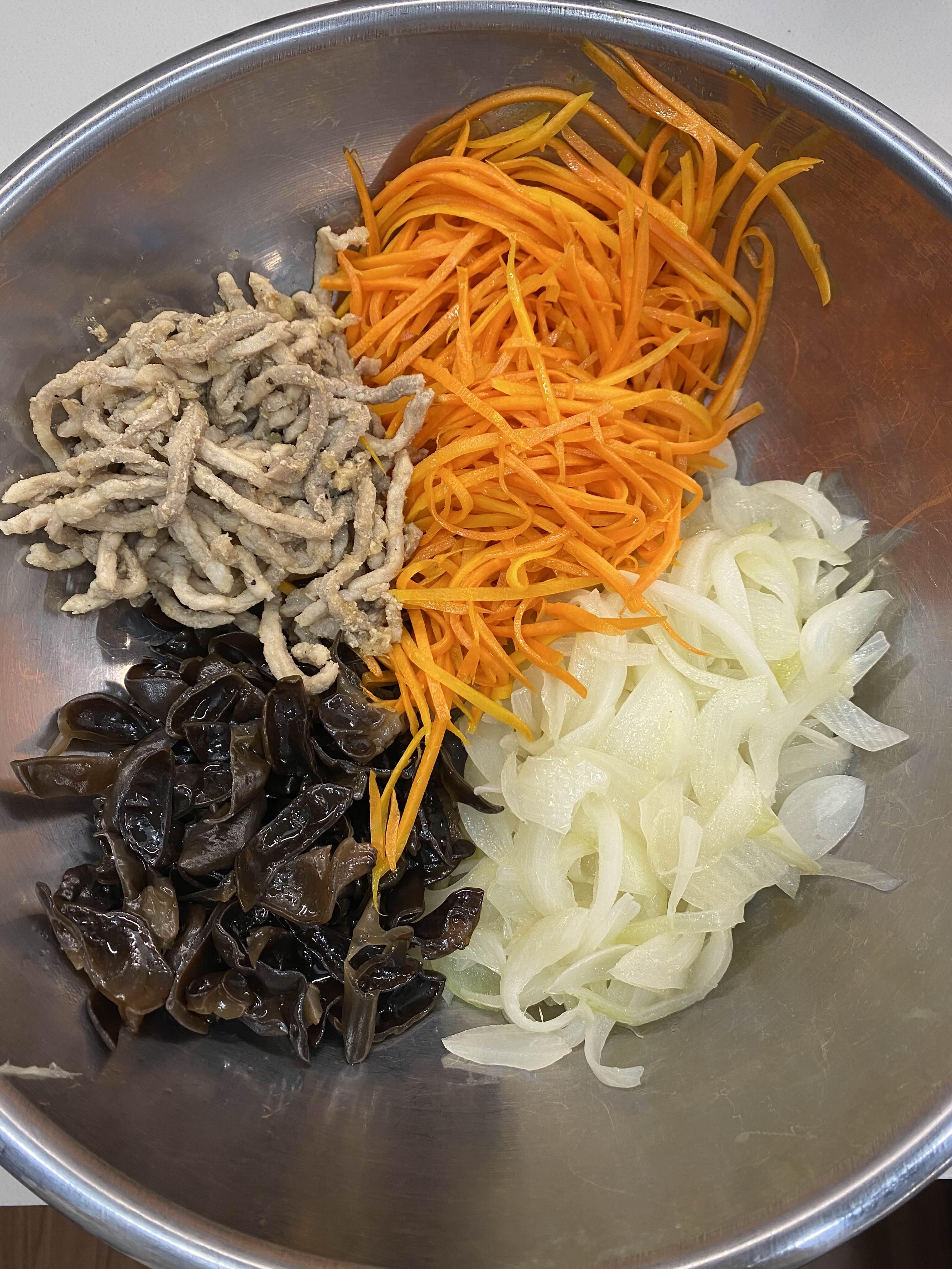 야채 손질 후에 돼지고기에 밑간을 해줄 거예요.