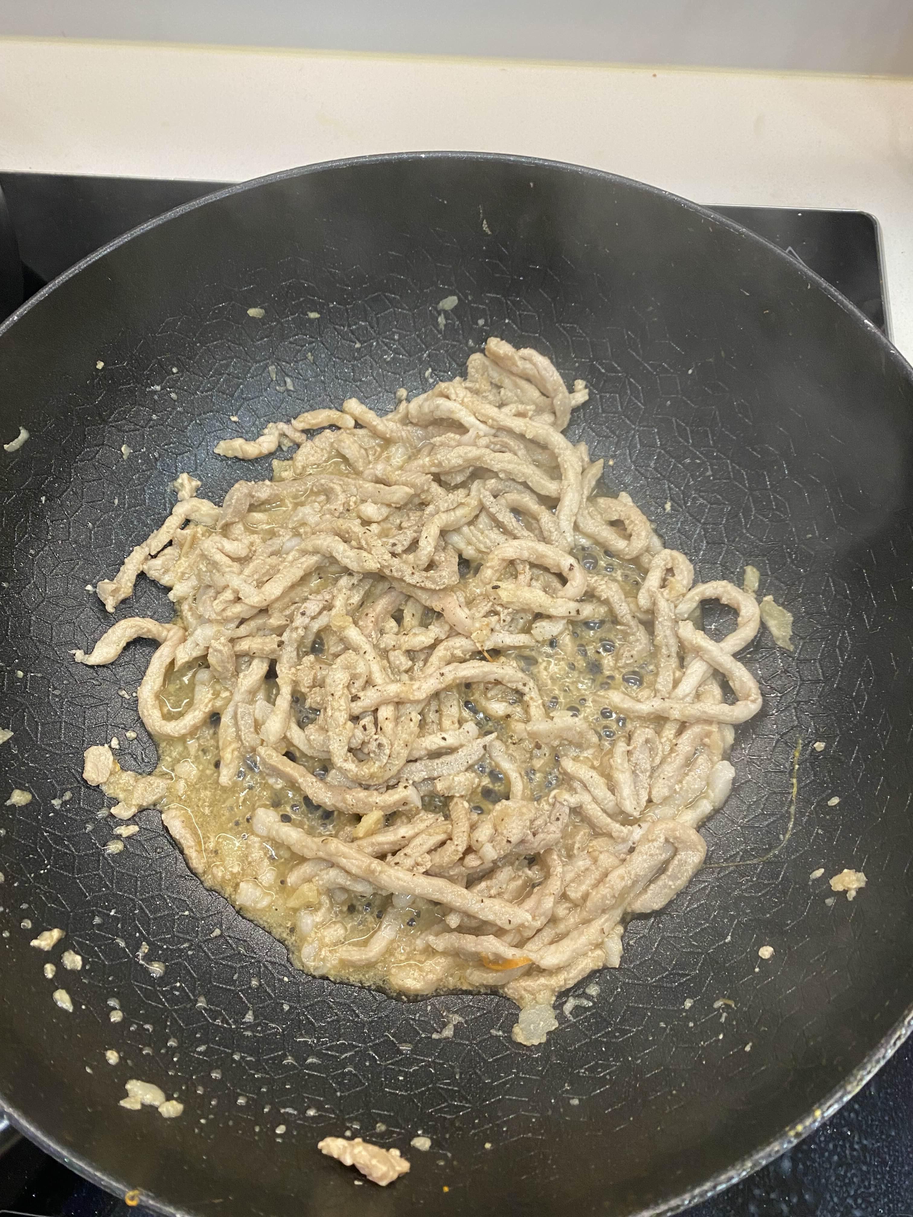 기름을 두른 후에 목이버섯도 볶아줍니다.