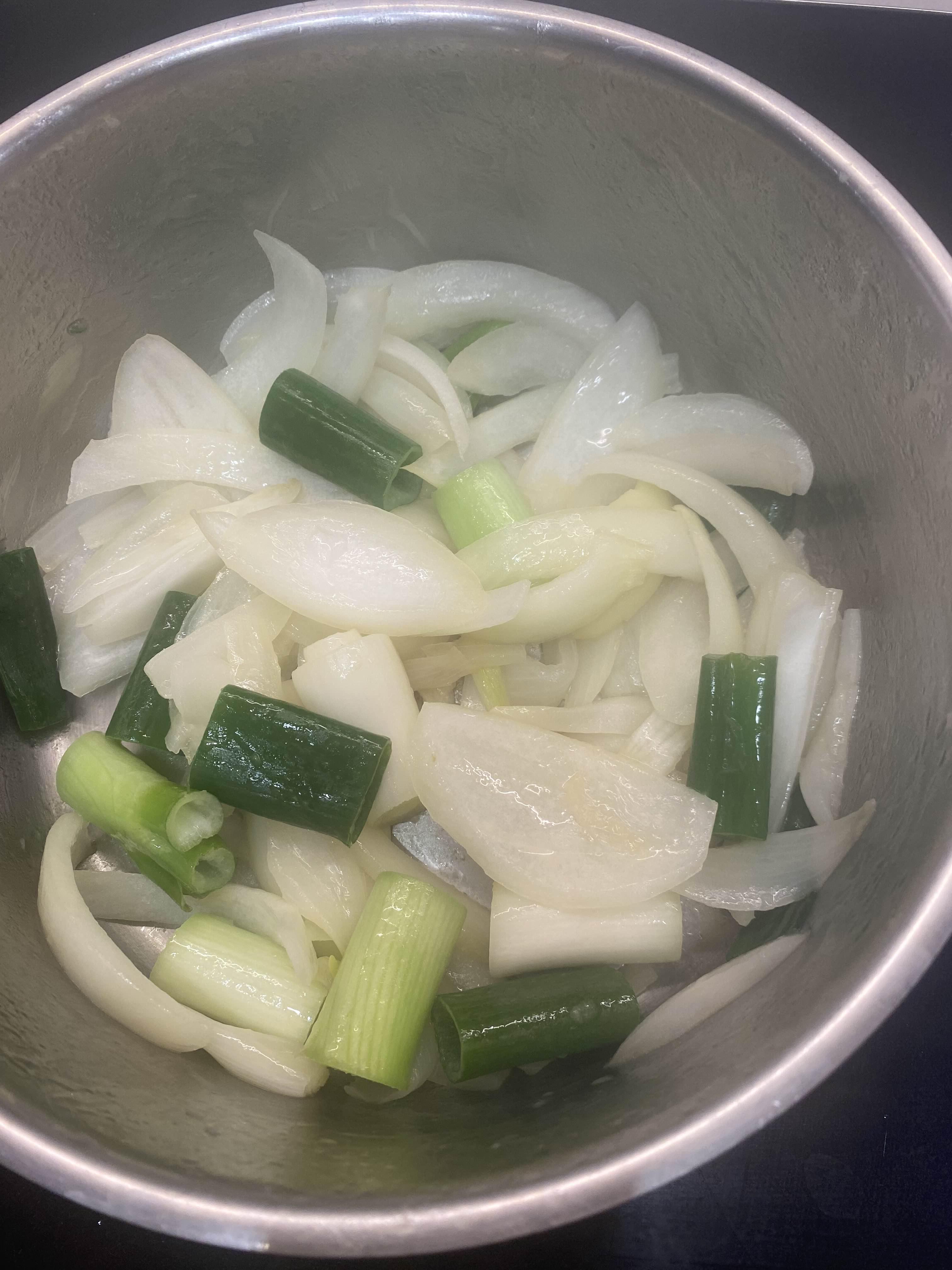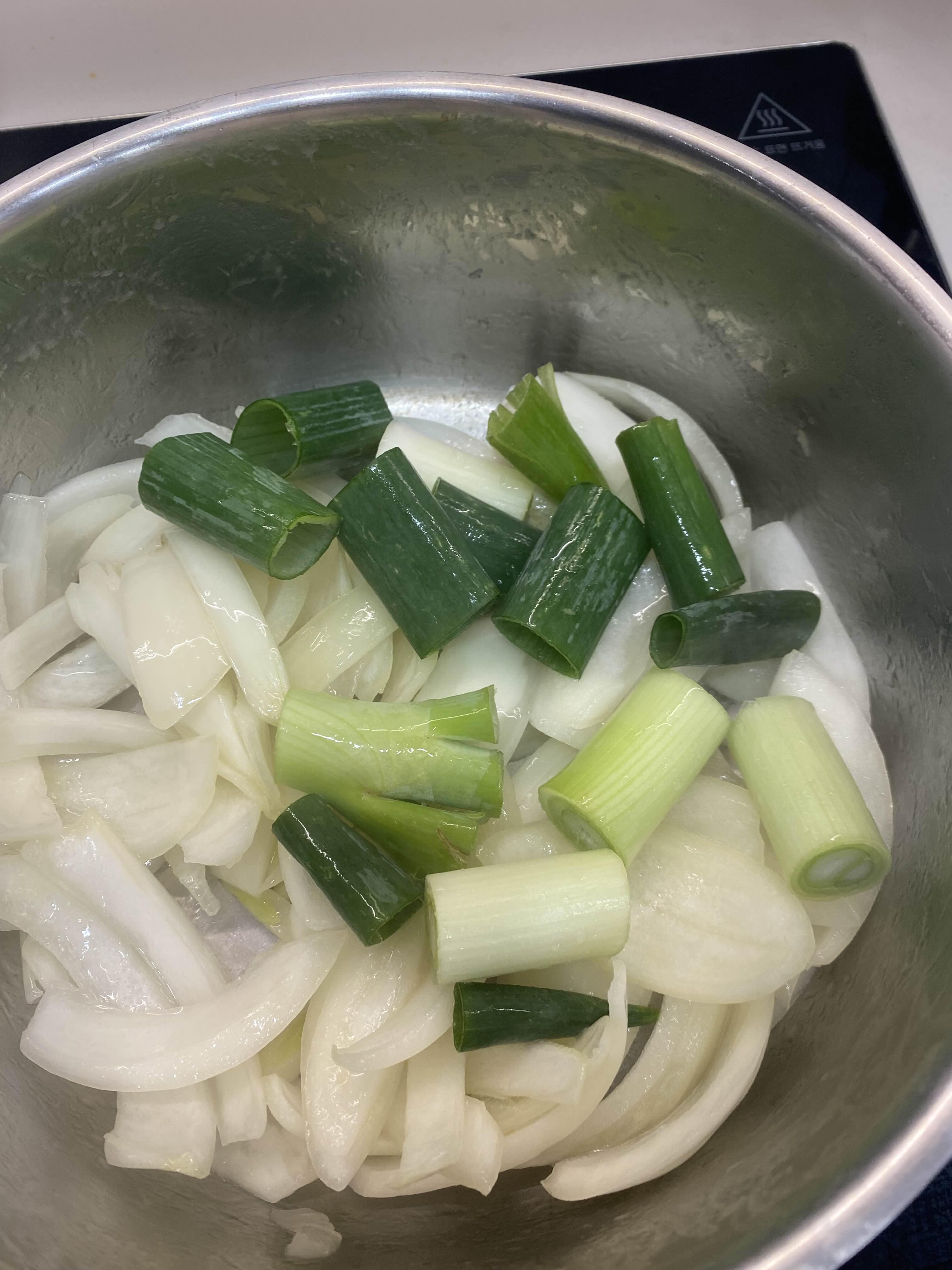 양파가 어느 정도 기름이랑 볶아졌으면 파를 넣어주세요