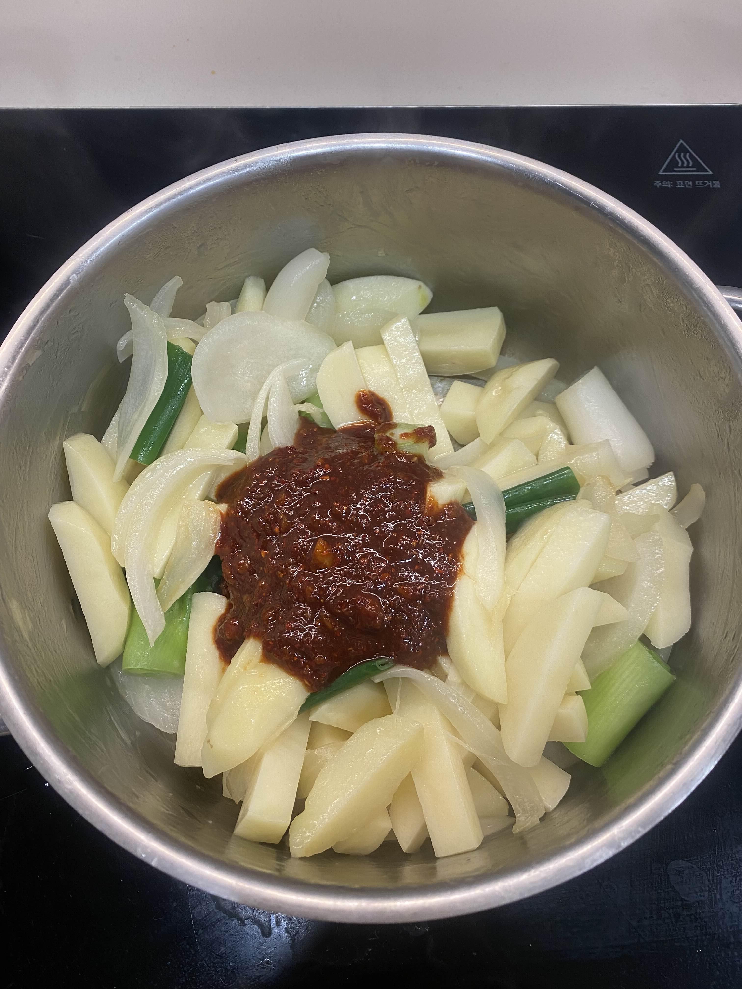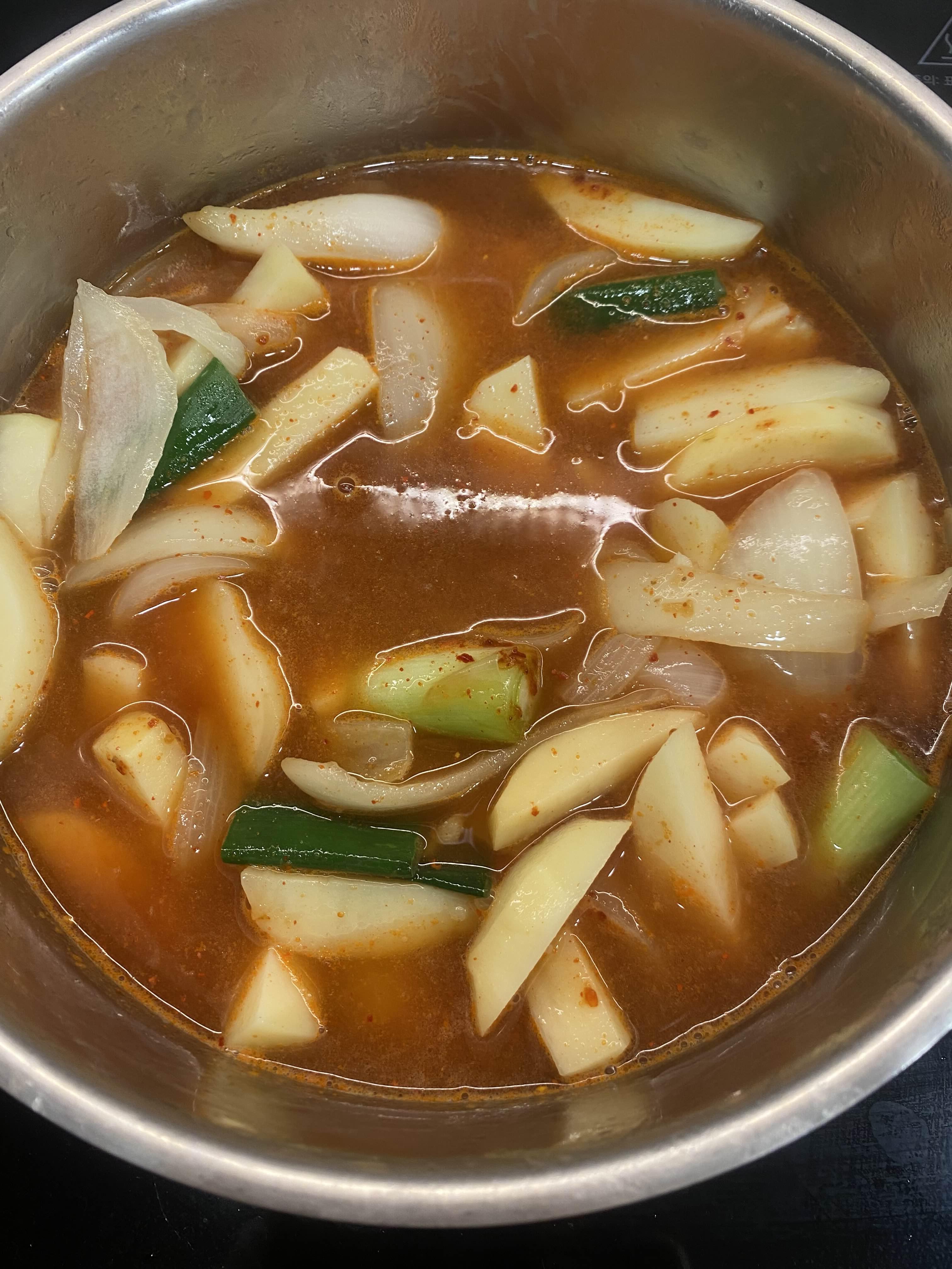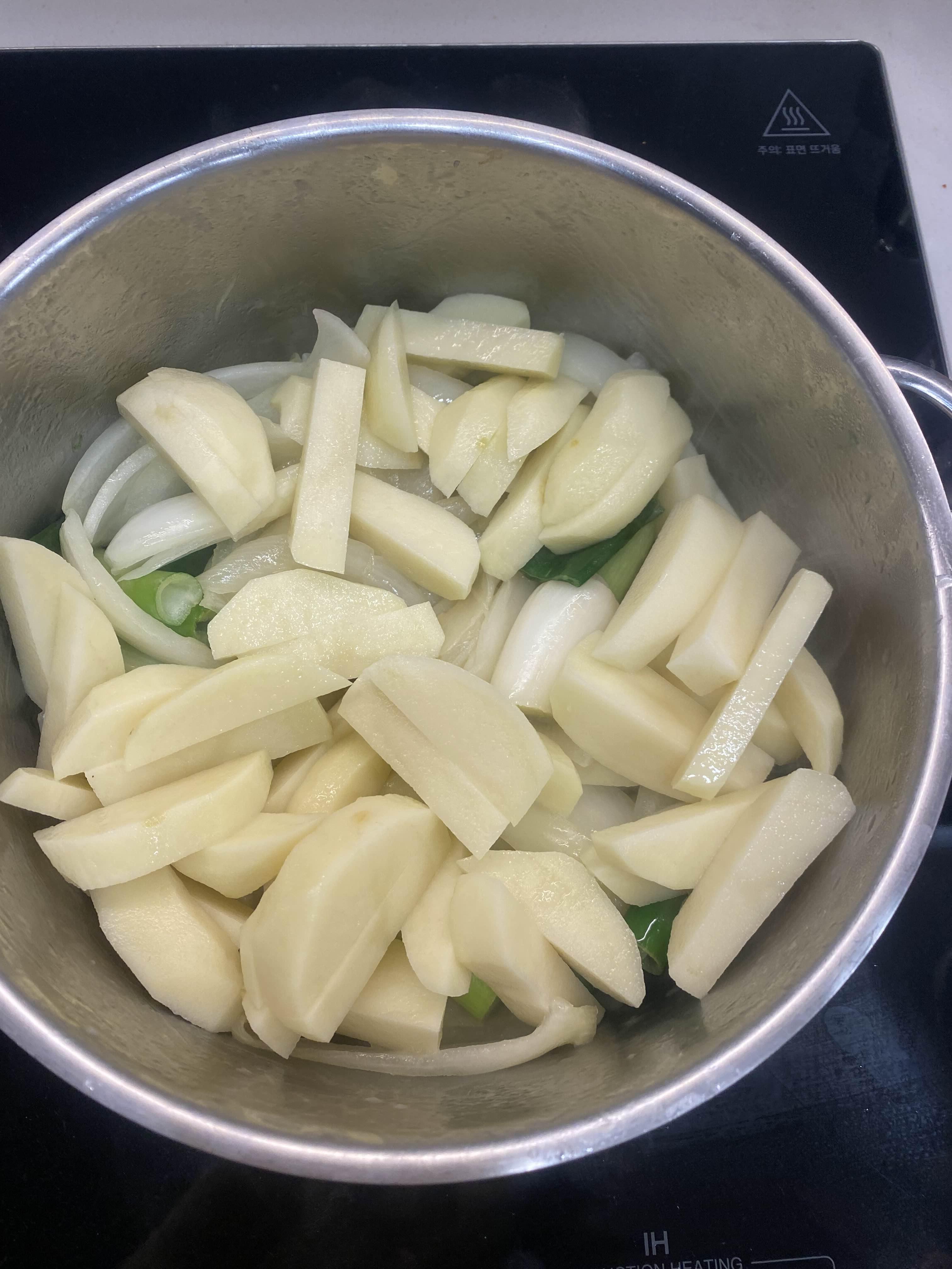 투명해질 때까지 볶다가 감자를 넣어줍니다