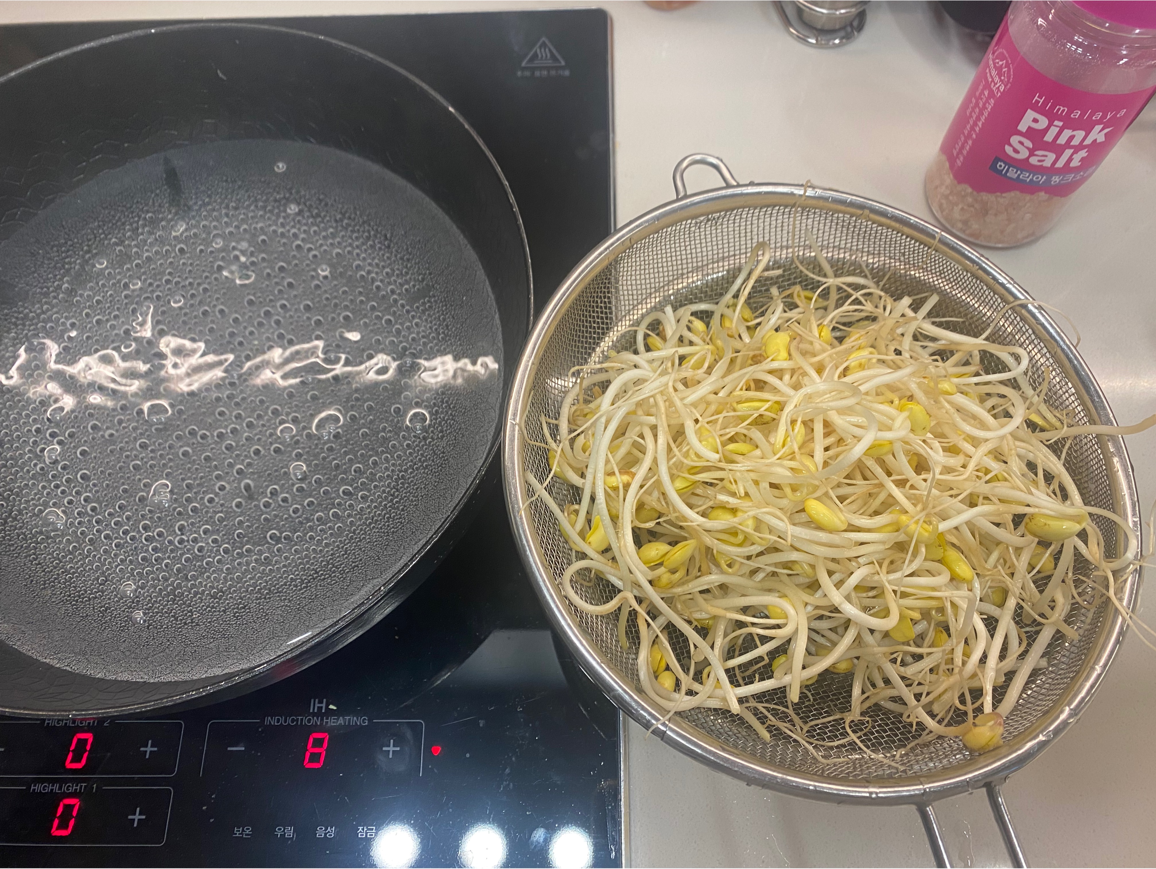 물이 끓기 시작하면 콩나물과 소금을 넣고